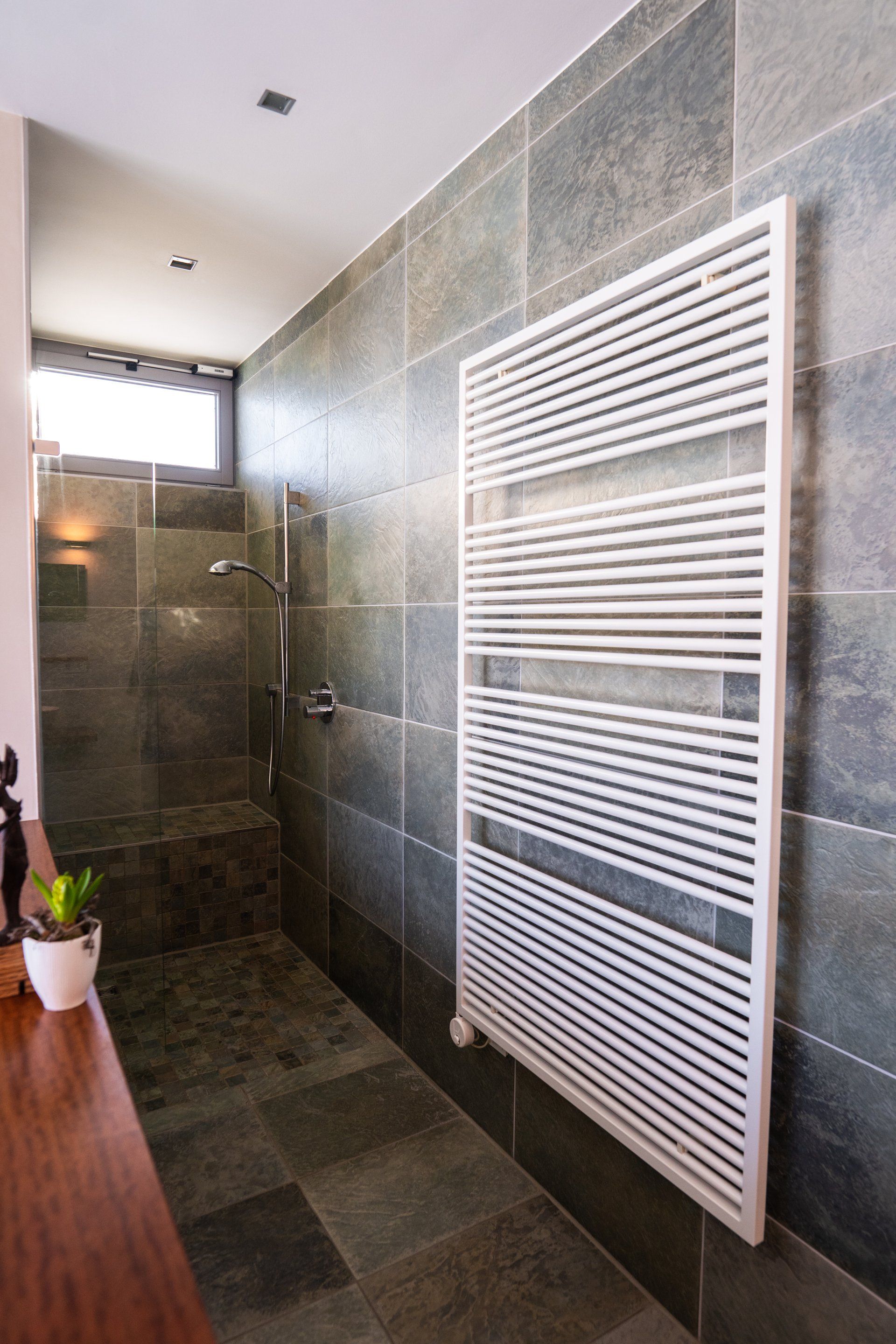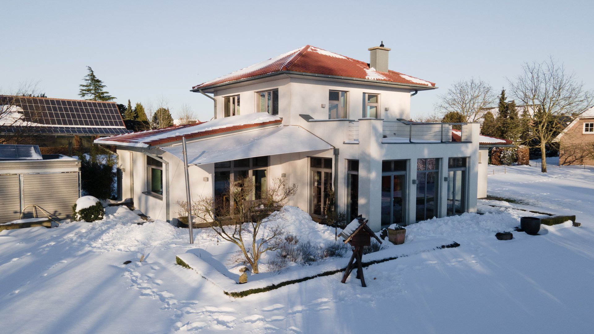 Die elektrisch betriebenen Außenjalousie an allen Fenstern des Hauses tragen ebenfalls entscheidend zu dem niedrigen Verbrauchswert bei.
