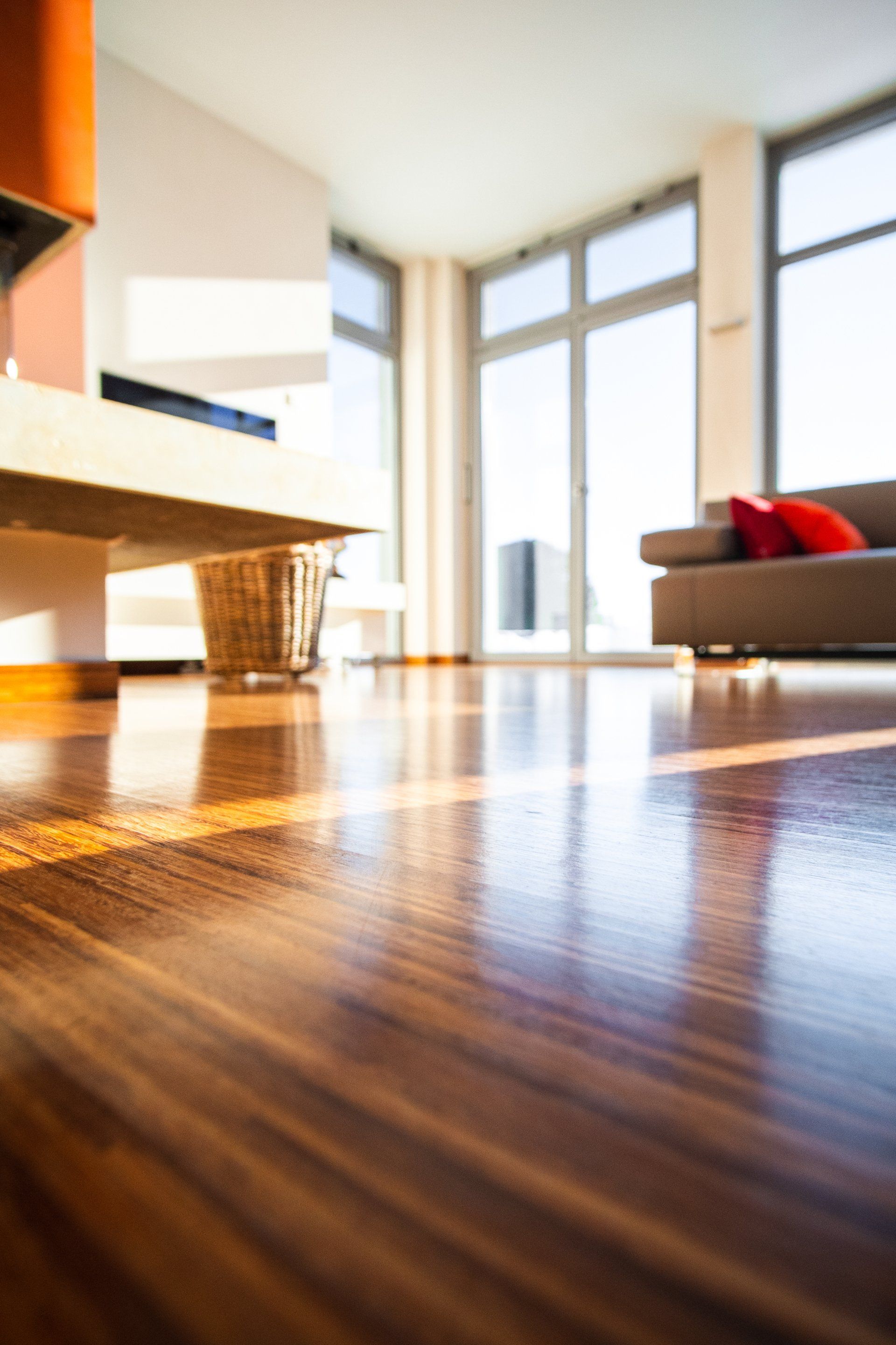 - Kempas Parkett geölt, Hochkantlamelle, Material Nussbaum