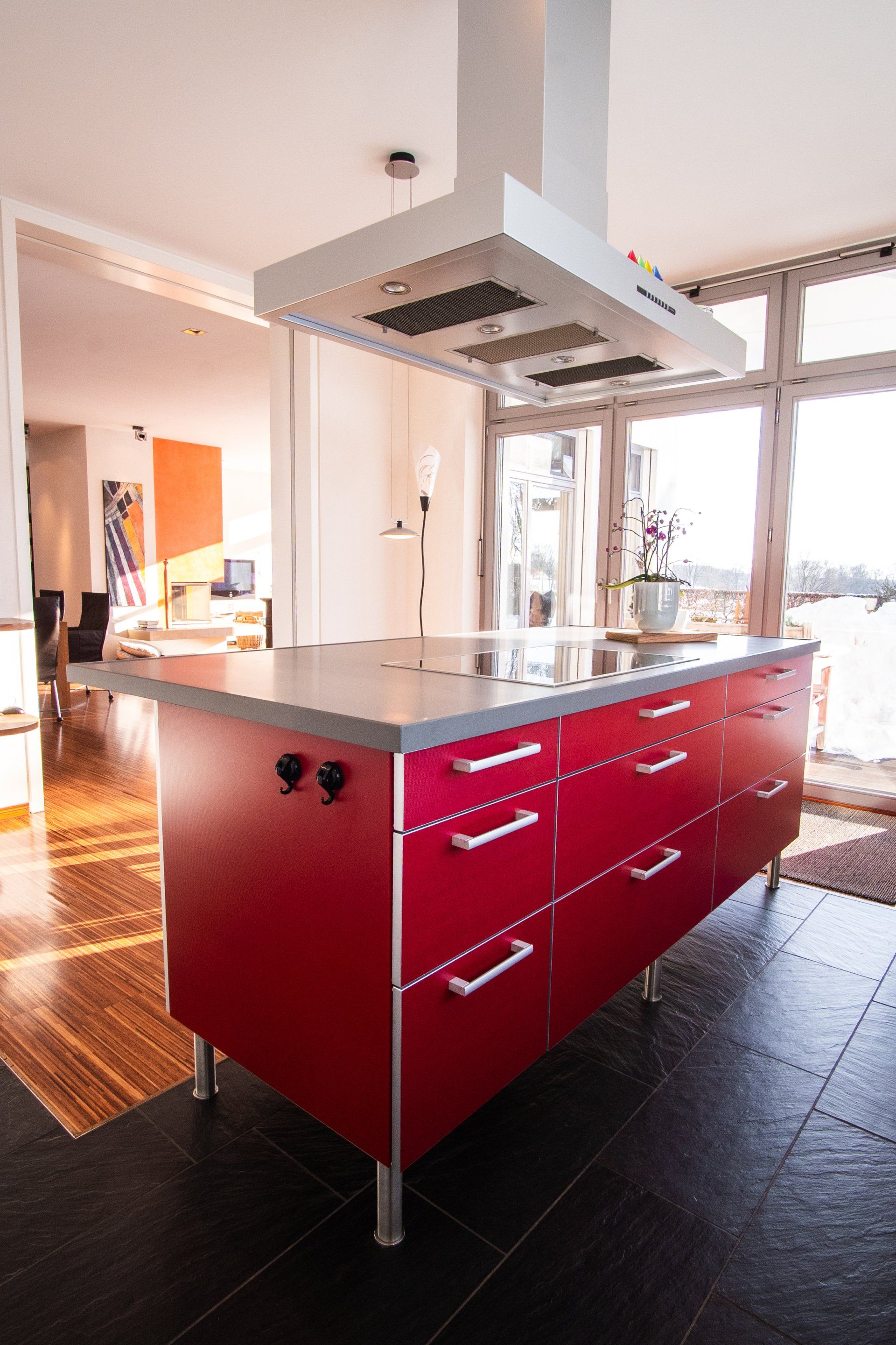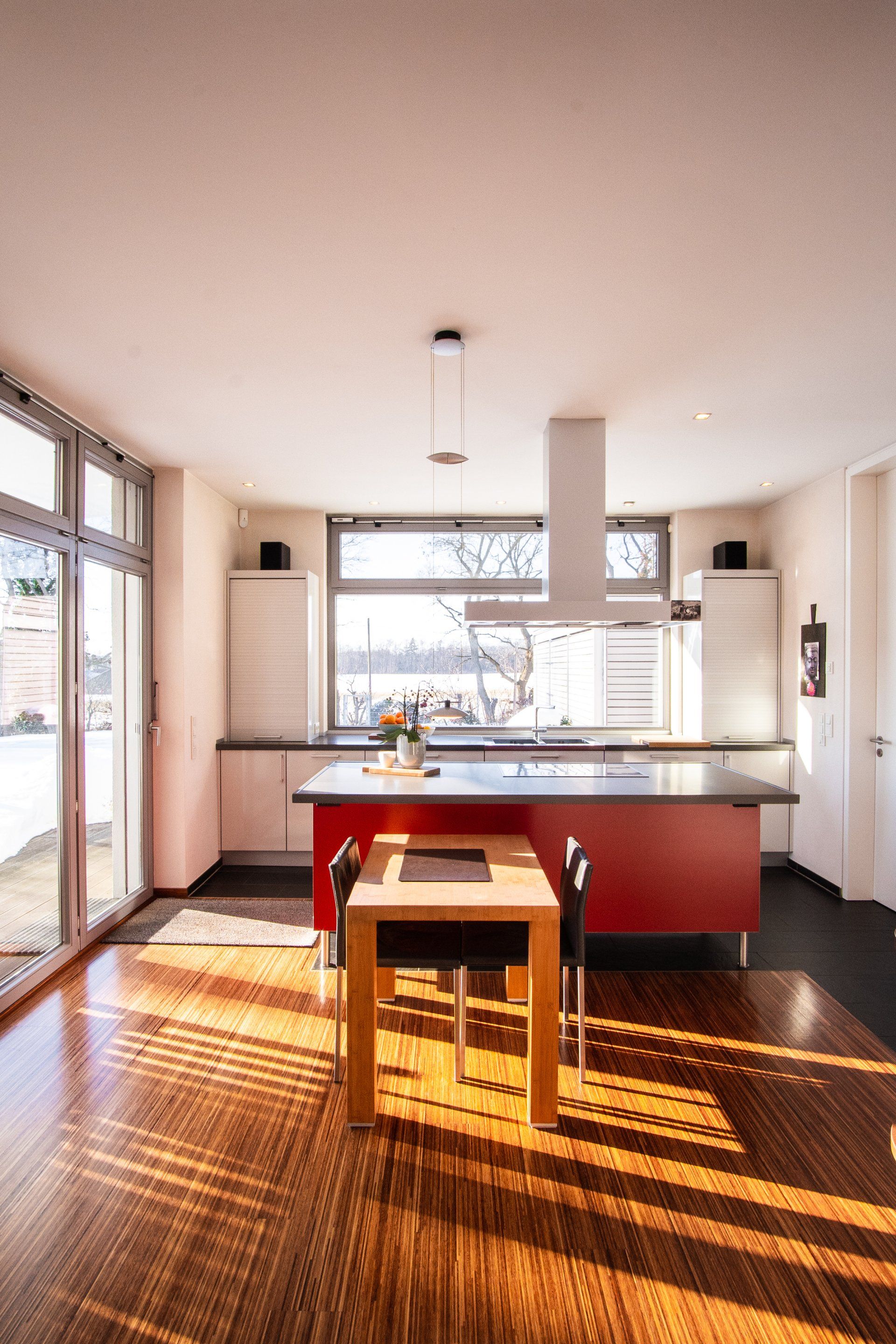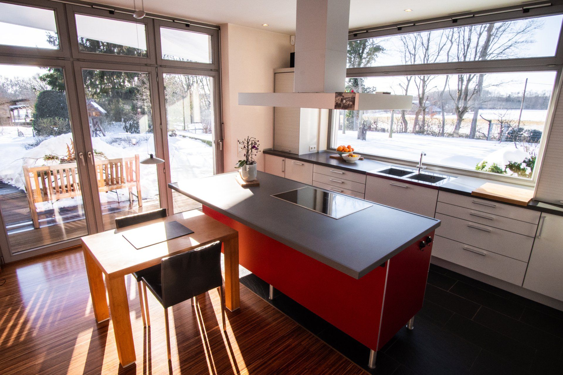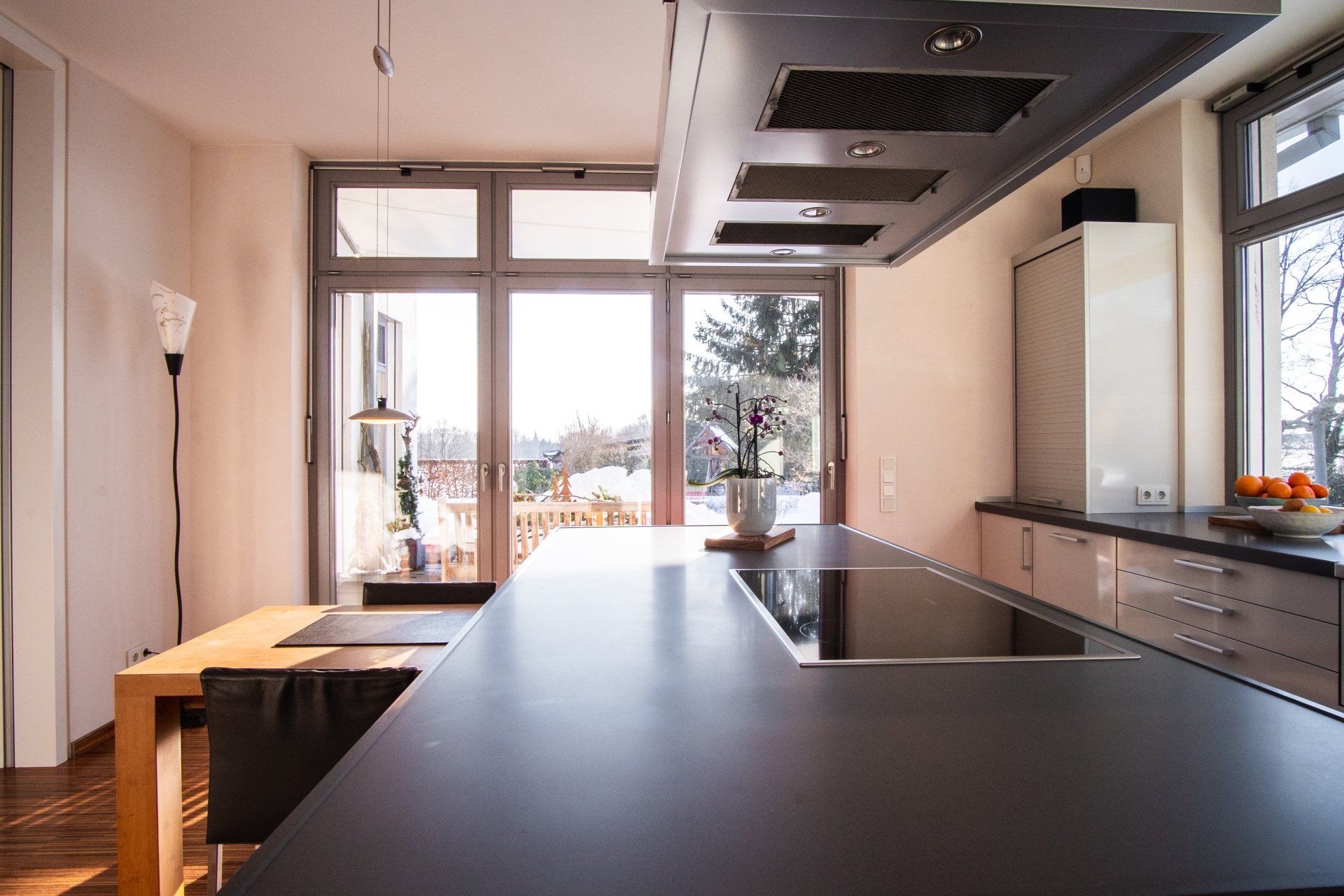 - Glas-Schiebetür in der Küche.